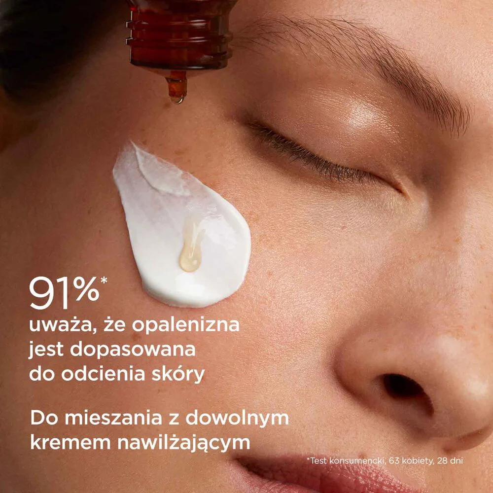 Obróć flakonik. Naciśnij u podstawy i uwolnij 3 krople preparatu, a następnie dokładnie wymieszaj w dłoni z Twoim zwykle stosowanym kremem na noc lub na dzień. Aplikuj równomiernie na skórę twarzy, szyi i dekoltu. Natychmiast po aplikacji starannie umyj dłonie mydłem. Produktu nie należy stosować samodzielnie.