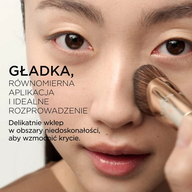 Pędzel do podkładu, który ułatwia aplikację, wygładza i równomiernie rozprowadza podkład, zapewniając jednolite wykończenie i piękny, promienny wygląd cery w połączeniu z podkładem Double Serum Foundation. Pędzel idealnie nadaje się do regulowania krycia, a także ułatwia uzyskanie pełniejszego krycia, umożliwiając precyzyjne nakładanie podkładu na niedoskonałości lub inne obszary wymagające większego krycia.